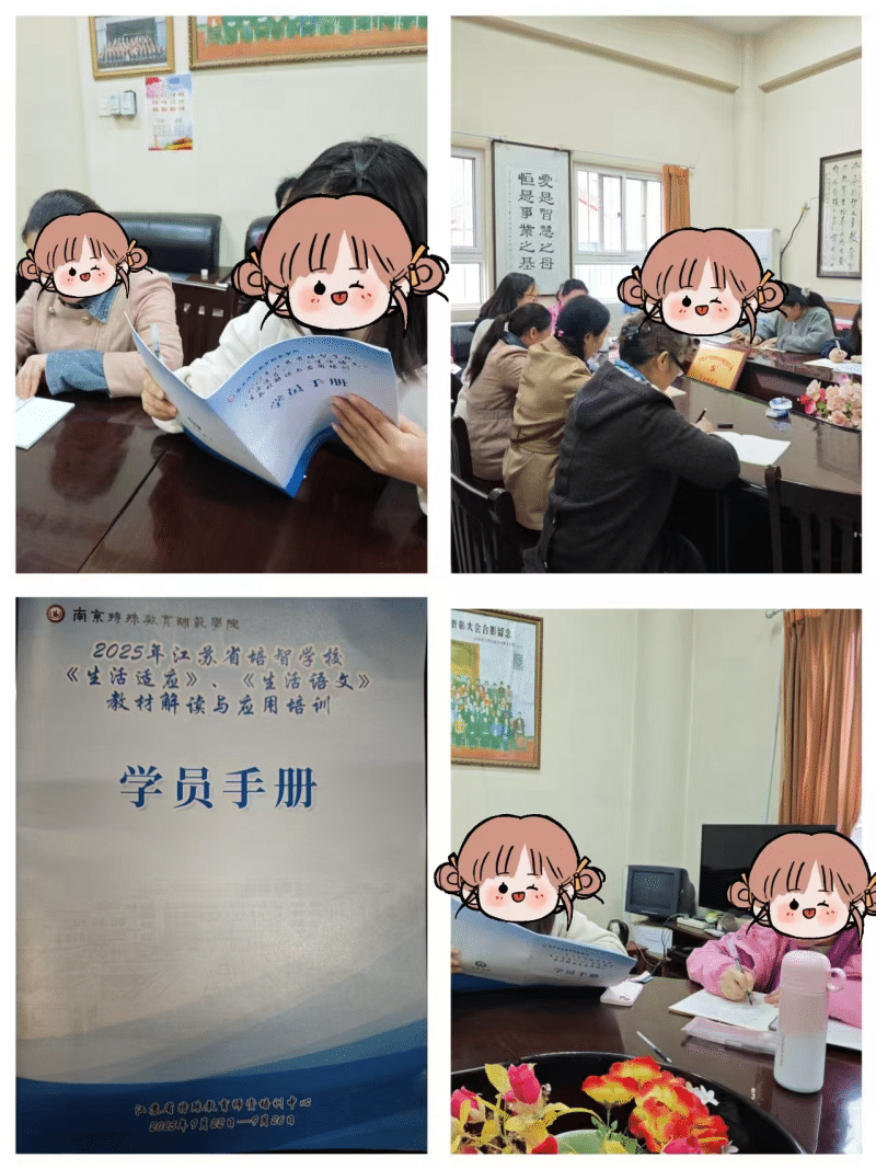 王璇老师向老师们分享江苏省特殊教育中心培训内容:《生活适应》、《生活语文》教材的解读与应用。