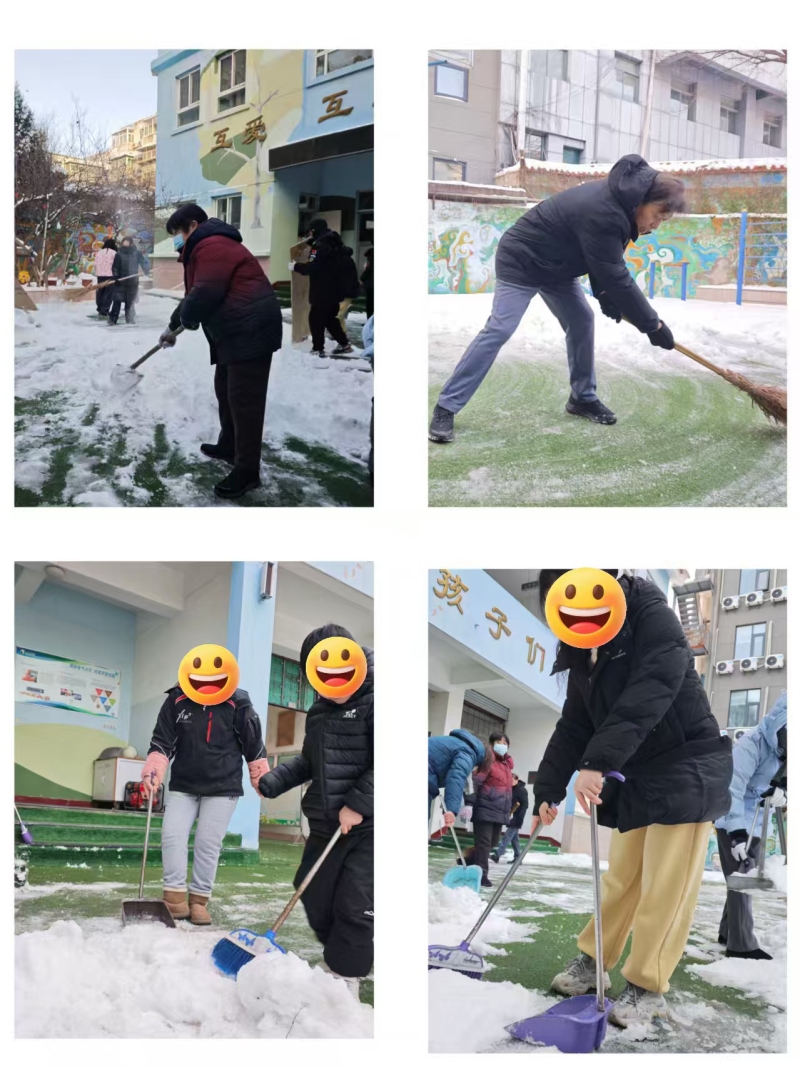 1月21日洪校长、强主任带领教职工扫雪除冰,为学子扫出一条平安到校路。清除教学楼屋檐下“冰溜子”,将隐患消除在萌芽状态,洪校长说:“悬冰事虽小,但关系到师生安全的事儿就是大事儿,我们要从细处做起,让老师安心,让家长放心省心。”